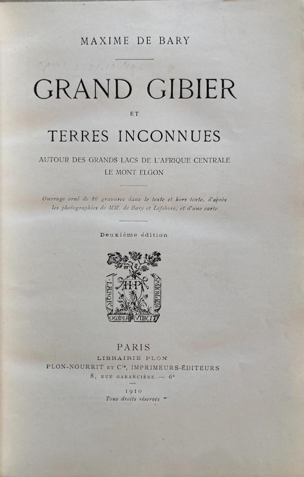 • <i>M. de Bary</i><br>Grand gibier et terres inconnues.<br>Autour des grands lacs de l'Afrique centrale, le mont Elgon