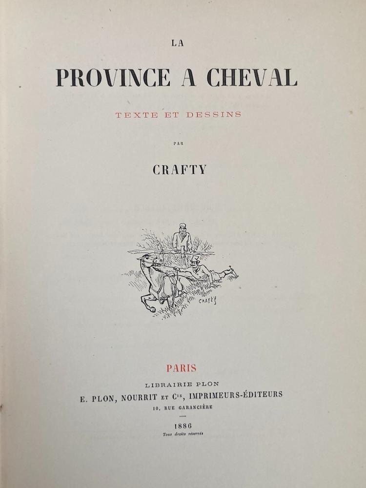 Édition originale. Un grand classique de Crafty (pseudonyme de Victor Gérusez) sur les chevaux, la vénerie, l'attelage, etc. Un savoureux recueil des petits travers de la province à cheval”.