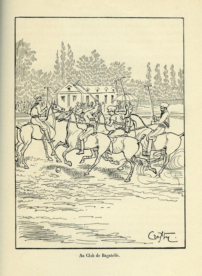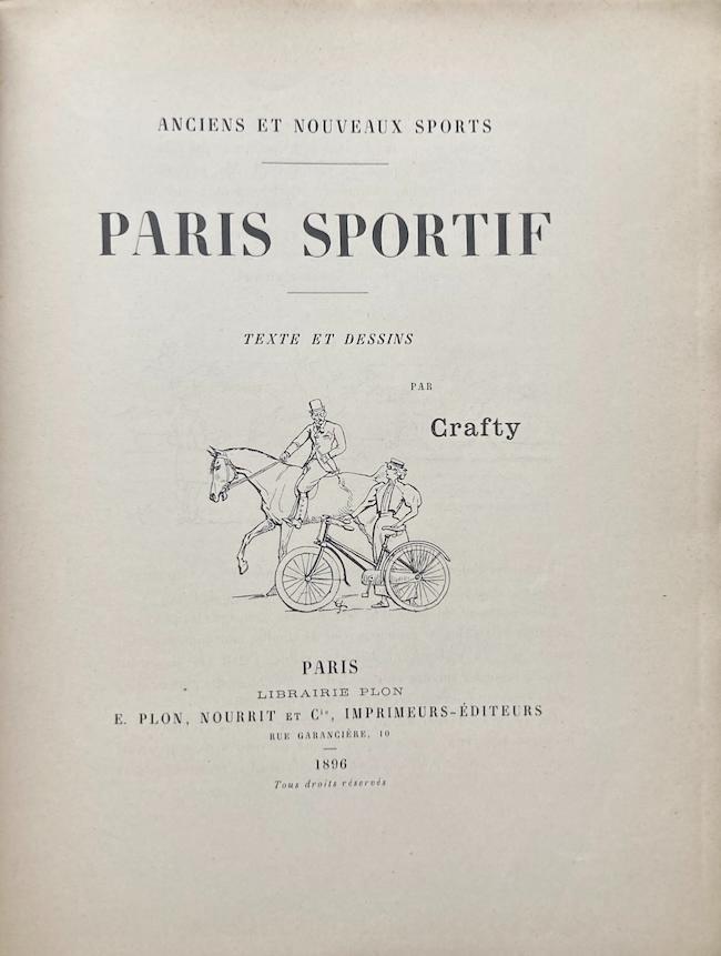 Édition originale d'un merveilleux album de Crafty (texte et dessins) qui illustre avec humour les sports à Paris à la Belle Époque : athlétisme, natation, boxe, danse, lawn-tennis, football, croquet, canotage, paume, bicyclette, canne, épée, tir aux pigeons, voitures automobiles, équitation, polo, coaching, véhicules hippomobiles, etc.