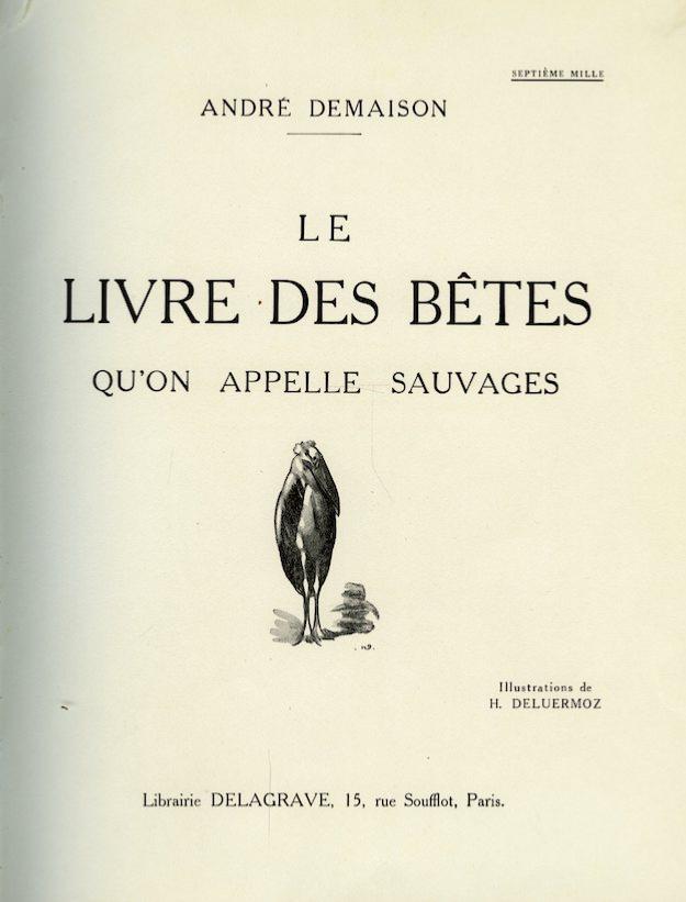 • <i>A. Demaison</i><br>Le livre des bêtes qu'on appelle sauvages
