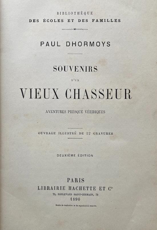 • <i>P. Dhormoys</i><br>Souvenirs d'un vieux chasseur.<br>Aventures presque véridiques