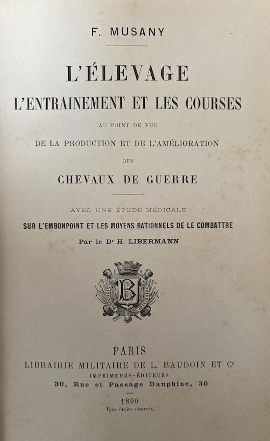 <i>F. Musany</i><br>L'élevage, l'entraînement et les courses<br>au point de vue de la production<br>et de l'amélioration<br>des chevaux de guerre