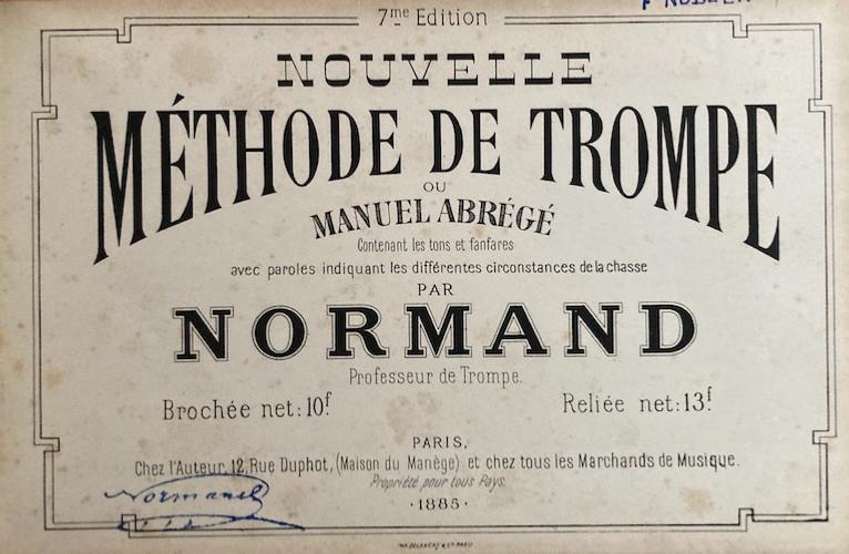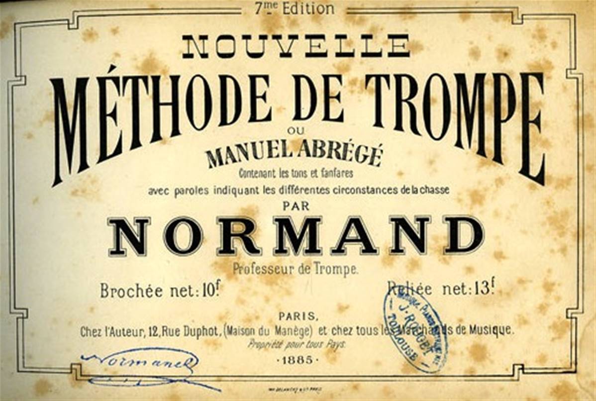 Septième édition, enrichie, du célèbre manuel de Normand "professeur de trompe" donnant les partitions de 233 fanfares.