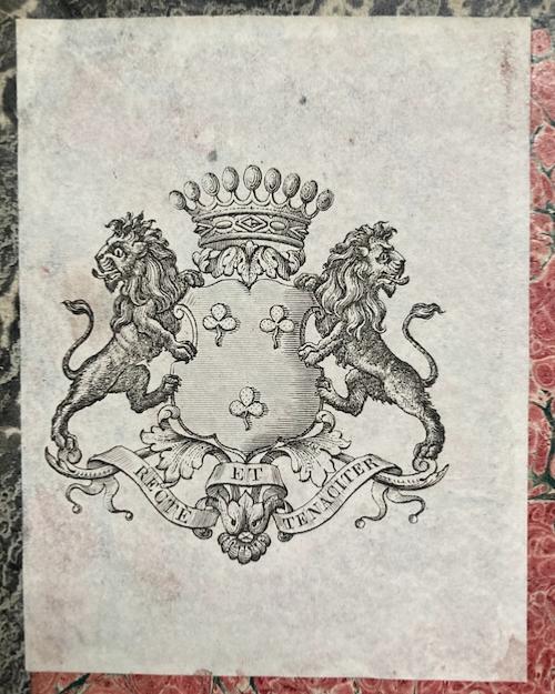 De la bibliothèque du comte de Brosses (1771-1834), avec son ex-libris héraldique gravé. Fils du président de Brosses,  René de Brosses fut préfet de la Loire-Inférieure de 1815 à 1823. Avec quelques annotations manuscrite de l'époque. Bel état intérieur. Dos frotté.