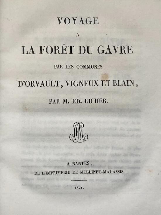 Voyage à la forêt du Gâvre par les communes d'Orvault, Vigneux et Blain. Deuxième lettre. 1821. 126 pages, 1 feuillet.