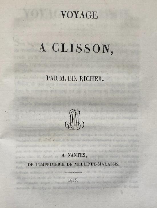 Voyage à Clisson. Troisième lettre. 1823. 92 pages.