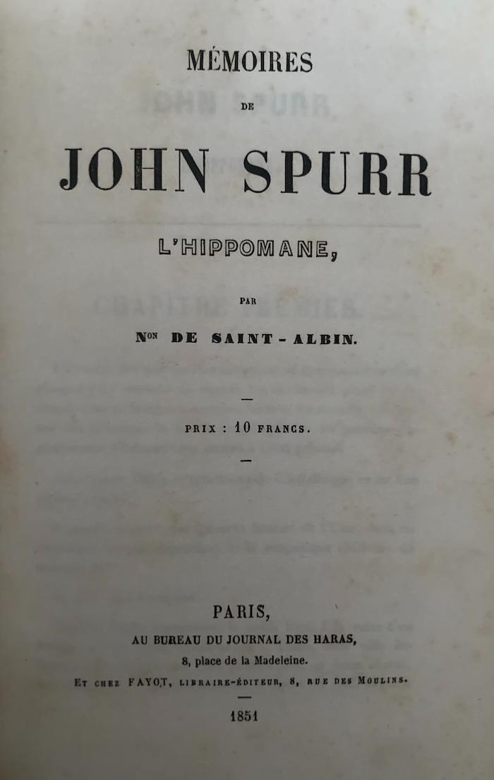 <i>N. de Saint-Albin</i><br>Mémoires de John Spurr, l'hippomane