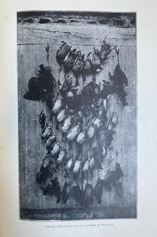Un grand classique remarquable sur la chasse au gibier d'eau, paru pour la première fois en 1904 : migrations, météo, descriptions zoologiques, braconnage, lieux de chasse, types de chasse, armes, canardières, etc. La moitié de l'ouvrage est consacrée à la chasse à la hutte: emplacement, construction, matériel, appelants, gabions de Picardie et de Normandie, etc.